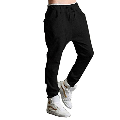 Pooqdo (TM) Guys Boy Harem Baggy Hip Hop Dance Sport Sweat Trousers Slacks Trousers (M, Black)